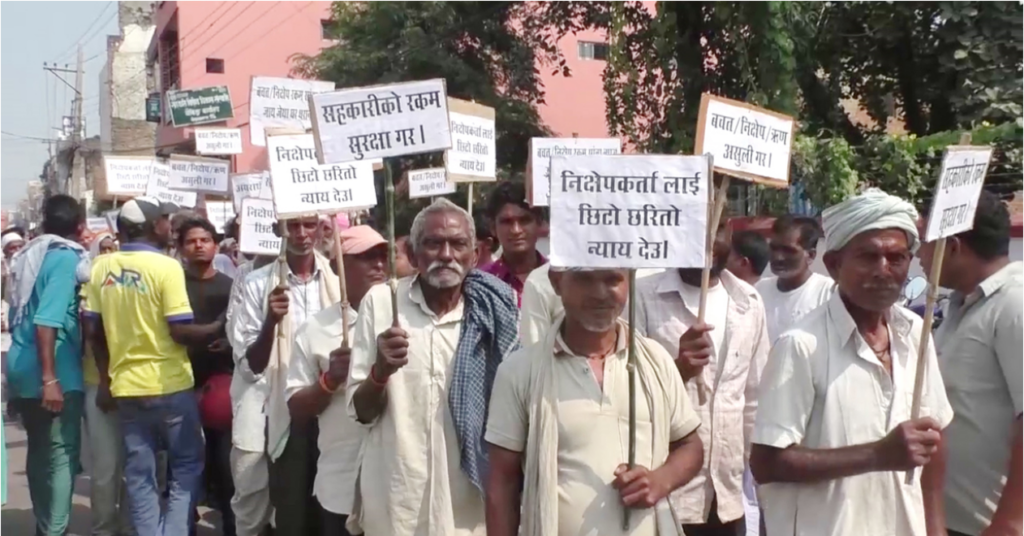 बचतकर्ताले साढे ५ वर्षदेखि नेपालगञ्जमा दर्जनौ पटक सडक आन्दोलन, बाँकेका प्रमुख जिल्ला अधिकारीदेखि काठमाडौं पुगेर प्रधानमन्त्री सम्मको ध्यानाकर्षण, जिल्लादेखि उच्च अदालतसम्म मुद्दा दायर गर्दा पनि आफैंले जम्मा गरेको रकम फिर्ता पाउन सकेका छैन ।