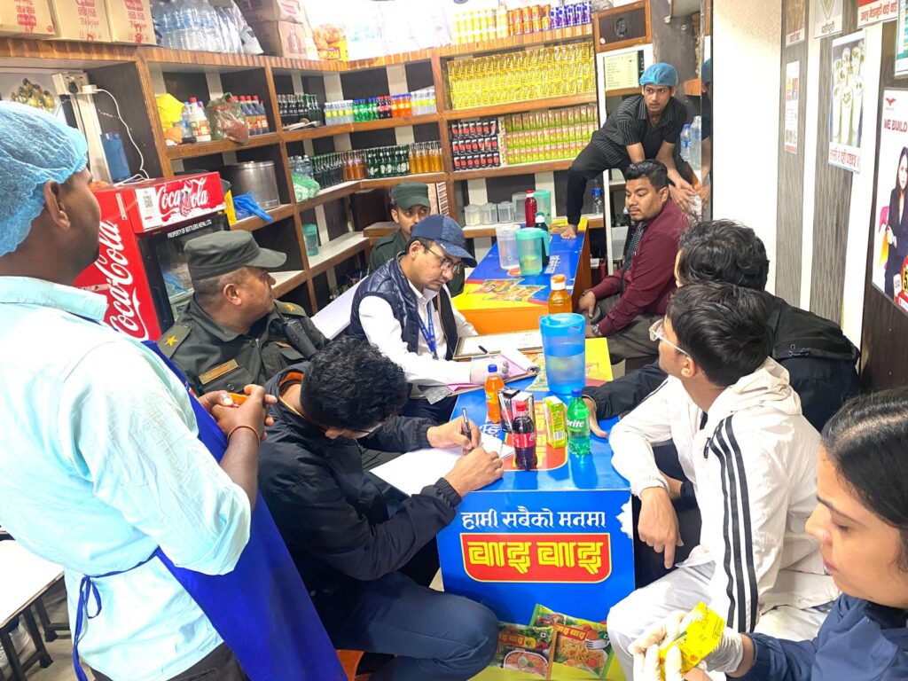 उनले भने, ‘हामी बजारमा कस्तो अवस्था छ भनेर बुझ्दैछौँ, व्यवसायीहरू खाद्य स्वच्छता र गुणस्तरीयतामा कत्तिको सचेत हुनुहुन्छ भनेर मूल्याङ्कन गर्दैछौं । राम्रो गर्नेलाई हौसला दिन्छौँ, कमजोरी देखिए सम्झाउँछौँ, सचेत गराउँछौँ; त्यति गर्दा पनि अटेर गर्नेलाई कानुनबमोजिम कारवाही हुन्छ ।’