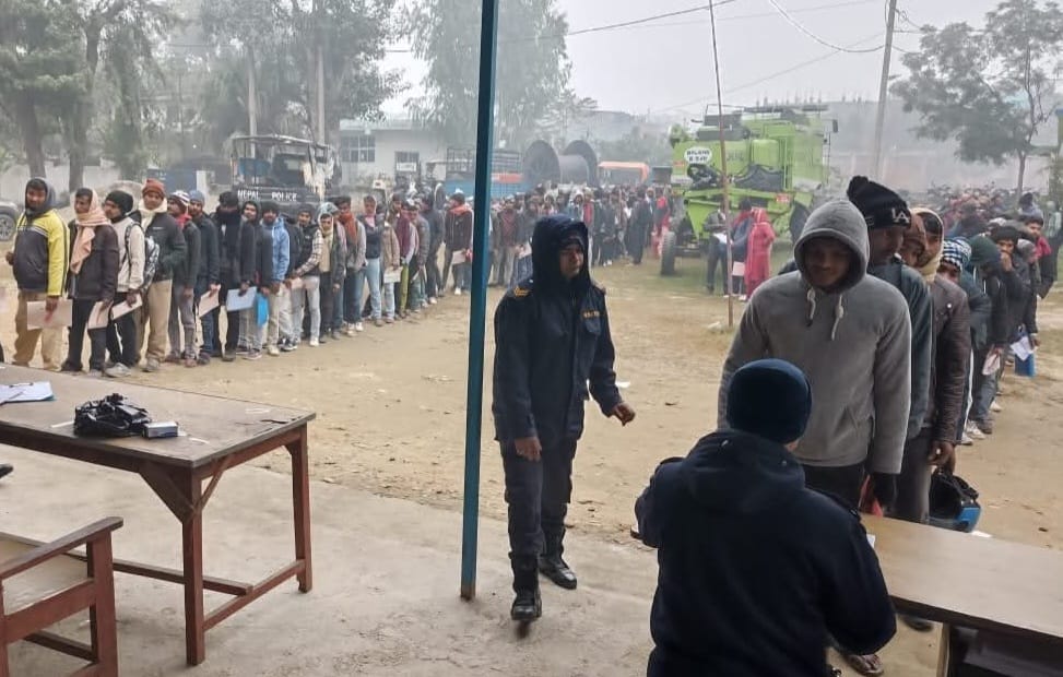 रौतहट । आगामी फागुन २१ गते हुने प्रतिनिधिसभा सदस्य निर्वाचनको सुरक्षाका लागि म्यादी प्रहरी (निर्वाचन प्रहरी) भर्ना प्रक्रिया सुरु भएसँगै बारामा युवाहरूको उत्साहजनक सहभागिता देखिएको छ ।