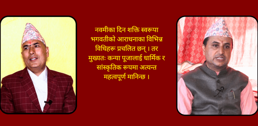 उनले भने, ‘महानवमीमा दुई वर्षदेखि दश वर्षसम्मका कन्याहरूलाई देवीको प्रतिकस्वरूप पूजा गर्ने परम्परा रहेको छ । यसमार्फत् भगवतीको कृपा प्राप्त हुने जनविश्वास छ ।’