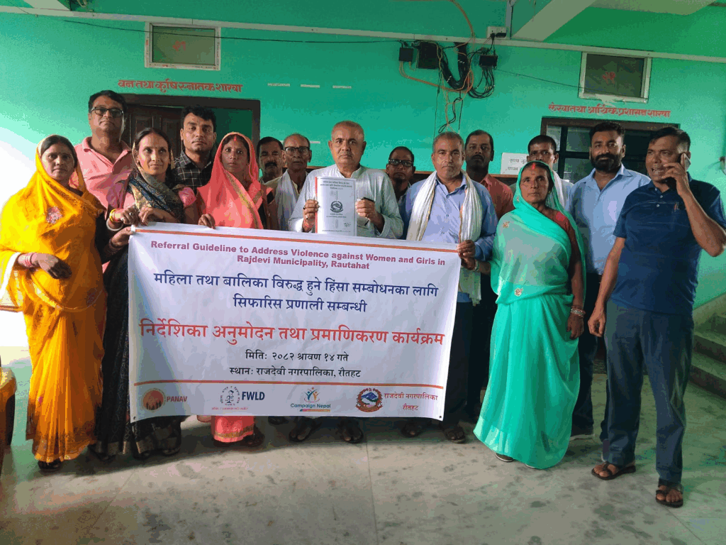 उक्त कार्यक्रम PANAV (Policy Advocacy Network Against Sexual and Gender Based Violence) र महिला, कानून र विकास मञ्च (FWLD) को आर्थिक तथा प्राविधिक सहयोगमा, अभियान नेपाल तथा राजदेवी नगरपालिकाको संयुक्त समन्वयमा सम्पन्न भएको हो।