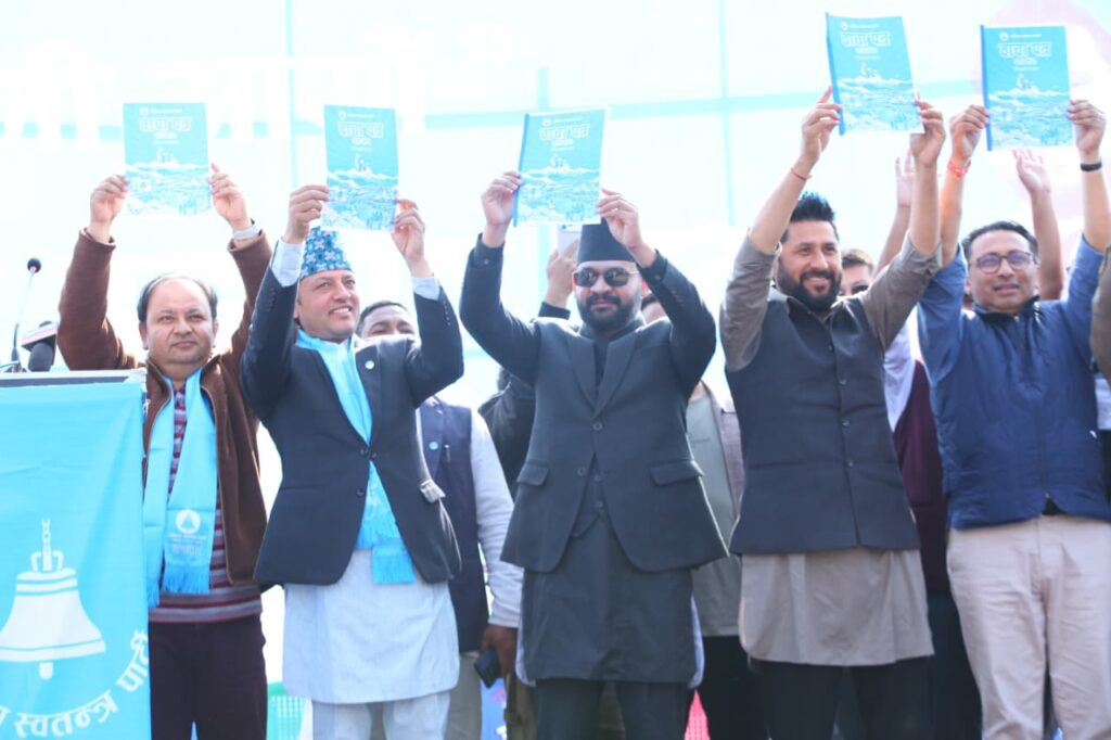 काठमाडौं । राष्ट्रिय स्वतन्त्र पार्टी (रास्वपा)ले फागुन २१ गतेको चुनावका बाचापत्र सार्वजनिक गरेको छ । बिहीबार रास्वपाले कर्णाली प्रदेशको राजधानी सुर्खेतमा आयोजित परिवर्तन उद्घोष सभाबाट पार्टी सभापति रवि लामिछाने, वरिष्ठ नेता बालेन साह, उपसभापतिद्वय डिपी अर्याल, स्वर्णिम वाग्लेलगायत नेताहरूले सार्वजनिक गरेका हुन् ।