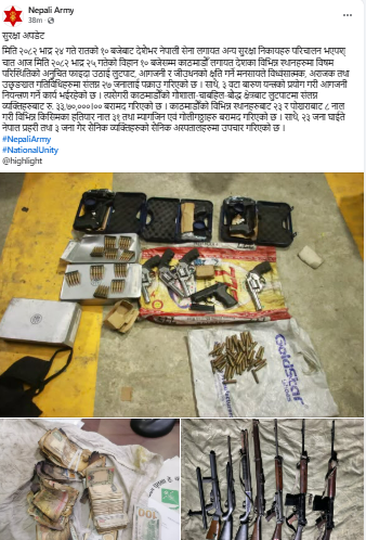 यस्तै, काठमाडौंका विभिन्न स्थानहरूबाट २३ थान हतियार तथा पोखराबाट ८ थान हतियार बरामद गरिएका छन् । यसरी बरामद गरिएका हतियारहरूको सङ्ख्या ३१ नाल पुगेको छ, जसमा म्यागजिन र गोलीगठ्ठा समेत रहेका छन् ।