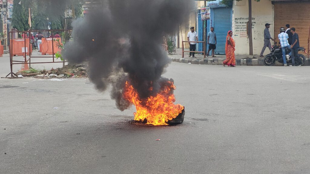पुरानो बानेश्वरको क्षेत्रमा सबै युवाहरुले बिहानैदेखि रोडमा टायर, टेबल र कागजहरु जलाइरहेका छन् ।
