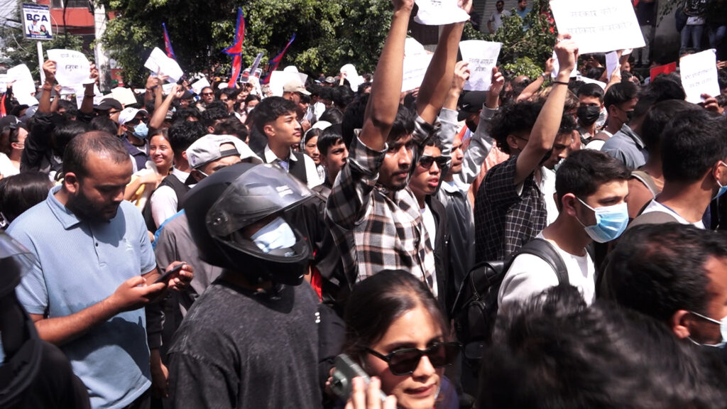 काठमाडौंको माइतीघर–बानेश्वर सडकमा जेन–जी पुस्ताको प्रदर्शन