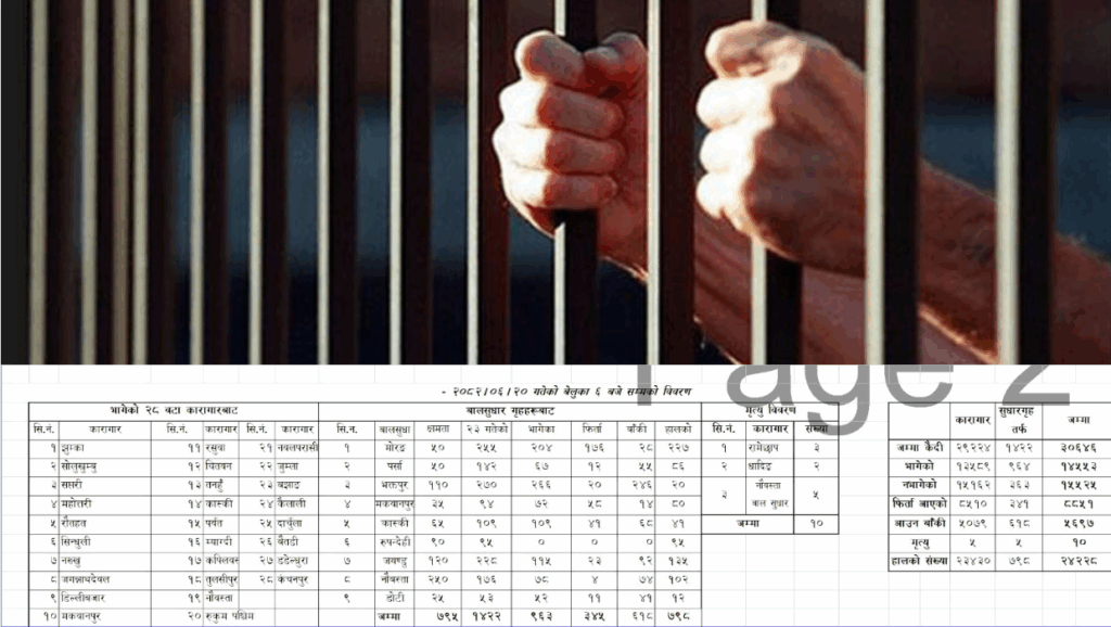 हाल कूल कैदीको संख्या २४ हजार २ सय २८ जना छन् । यसमा कारागारका २३ हजार ४ सय ३० छन् भने सुधारगृह तर्फ ७ सय ९८ जना छन् ।