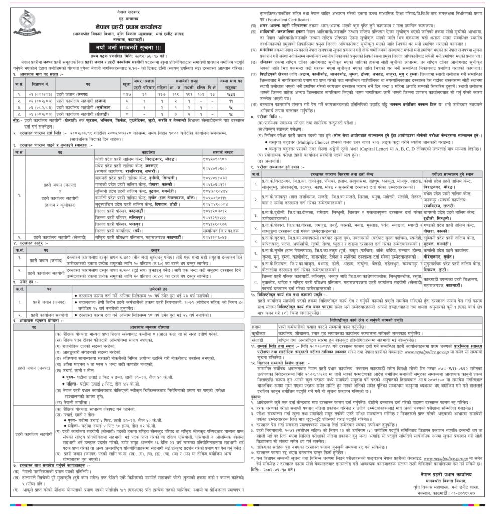 १५५३ जना प्रहरी जवान, प्रहरी कार्यालय सहयोगीतर्फ हजाम ११ जना, कुचीकार १५ जना र खेलाडी १५ जना गरी १५ हजार ९४ जना भर्ना गर्न दरखास्त आह्वान गरेको हो ।