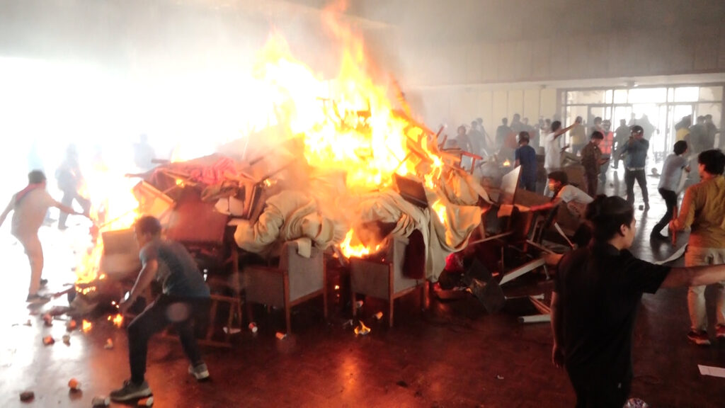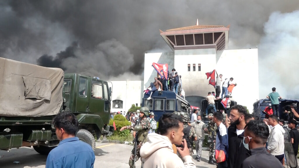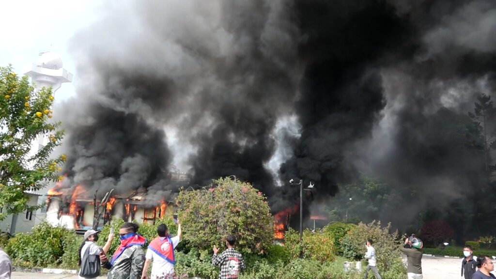 काठमाडौं वानेश्वरमा रहेको संघीय संसद भवनमा प्रदर्शनकारीहरुले आगजनी गरेका छन् । प्रहरी सुरक्षा अनियन्त्रित भएपछि मंगलबार दिउँसो संसद भवनभित्रै प्रवेश गरेर आगजनी गरेका हुन् ।