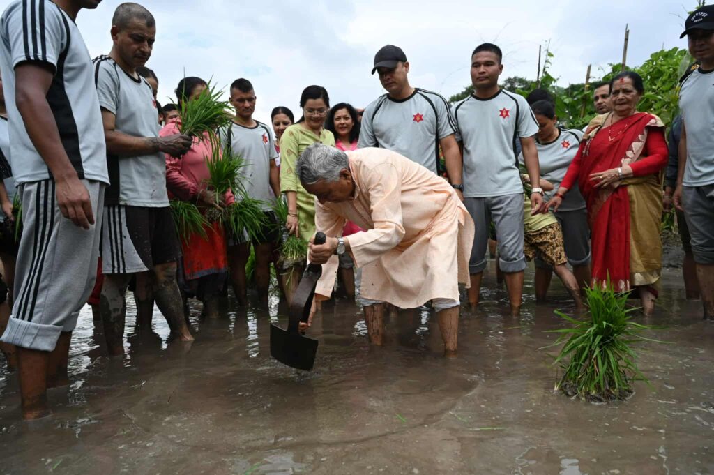 राष्ट्रपति पौडेल धान रोपाइँमा सहभागी