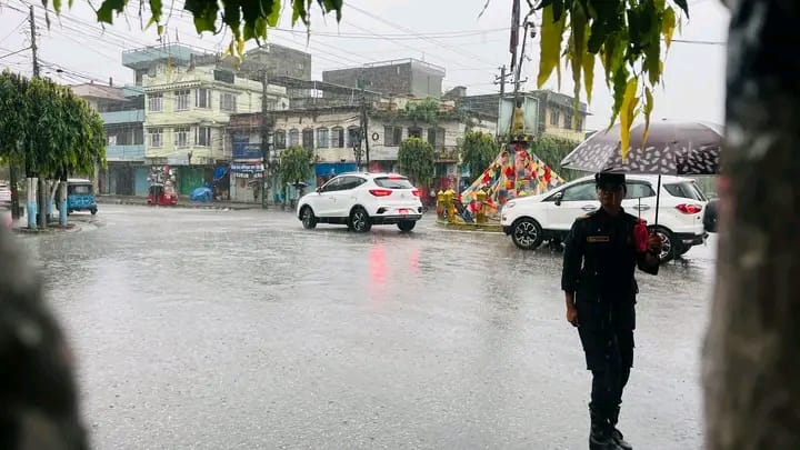 लगातार वर्षाले हेटौँडा अस्तव्यस्त, मुख्य बजार क्षेत्रमा पानी जम्यो