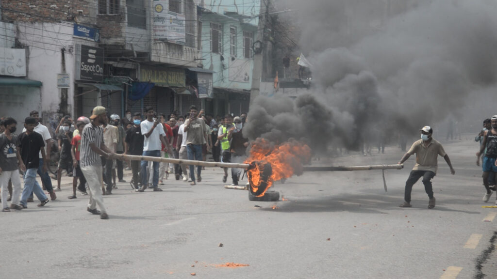 वीरगन्जमा निषेधाज्ञाको अवज्ञा गर्दै प्रदर्शन जारी