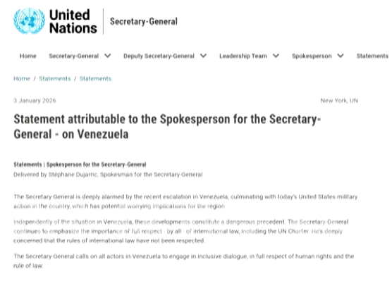 काठमाडौं । संयुक्त राष्ट्रसंघ, युरोपेली संघ र क्यारिबियन समुदायले भेनेजुएलामा अमेरिकी सैन्य कारबाही र राष्ट्रपति निकोलस मादुरो र उनकी पत्नीको पक्राउ गरेको घटनाको संयुक्त रूपमा कडा निन्दा गरेका छन्।