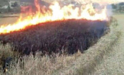 पाकेको मार्सीधानमा ब्लाष्ट रोग लागेपछि खेतमै आगो लगाएर नष्ट गर्दै...