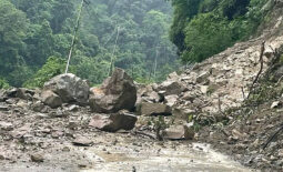 मकवानपुरको भिमफेदी ९ लामिडाँडामा पहिरोका कारण सडक अवरुद्ध