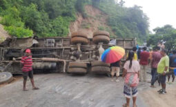 तनहुँ व्यासमा बालुवा बोकेको ट्रक पल्टिंदा राजमार्ग नै अवरुद्ध