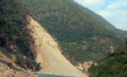 दूधकोसी नदी किनारमा सुक्खा पहिरो
